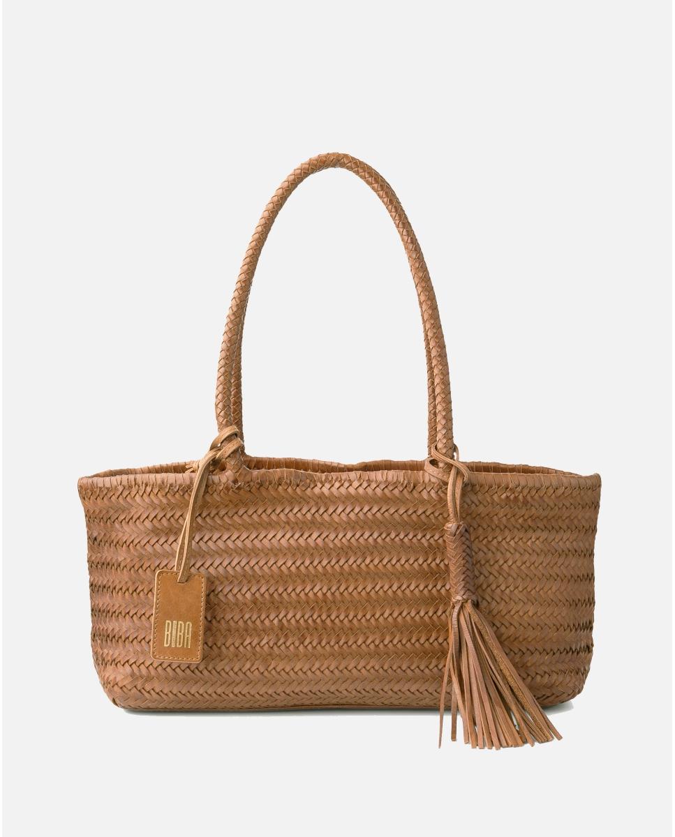 - Bolso de mujer en piel lavada de vacuno con diseño trenzado, fabricado en Barcelona.