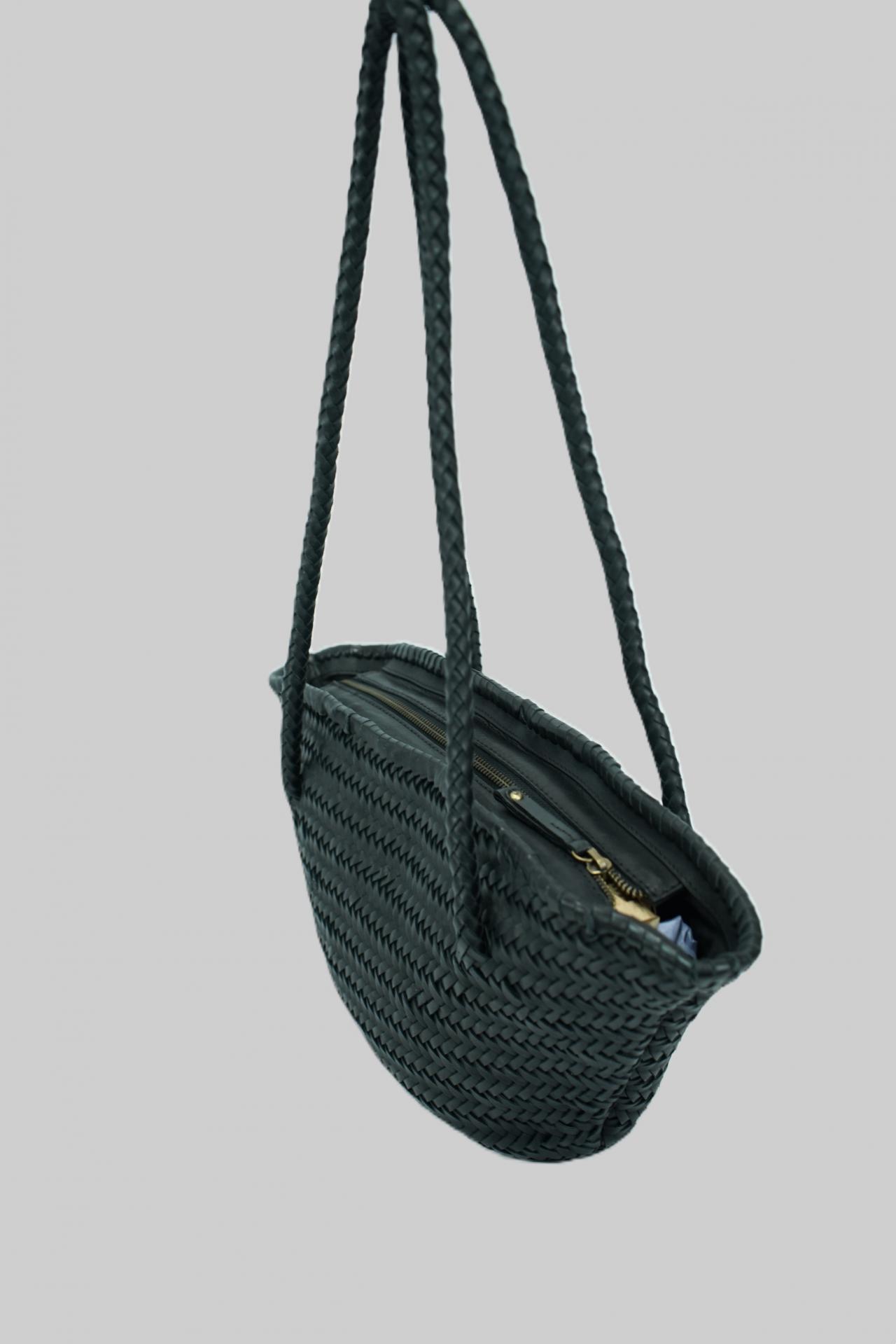 - Dispone de doble asa de brazo u hombro, en piel trenzada.